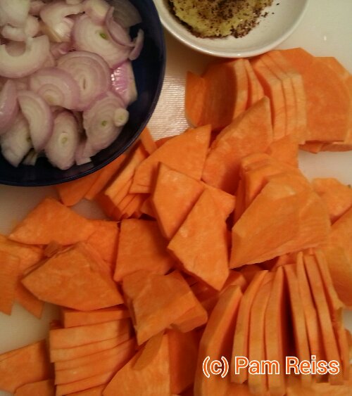 - 2 lbs. (2 medium) sweet potatoes, peeled and sliced