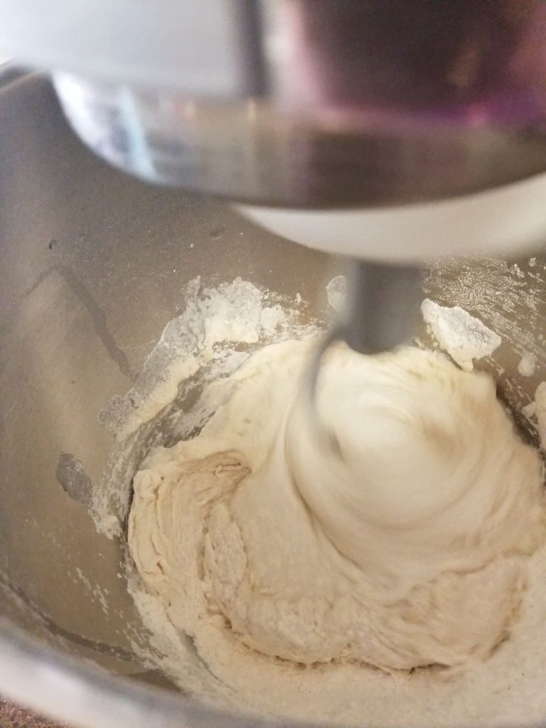 Add all of the ingredients to the bowl of a stand mixer and use the dough hook to mix them together on low. If you need to, scrape down the sides and bottom of the bowl to make sure everything is incorporated.