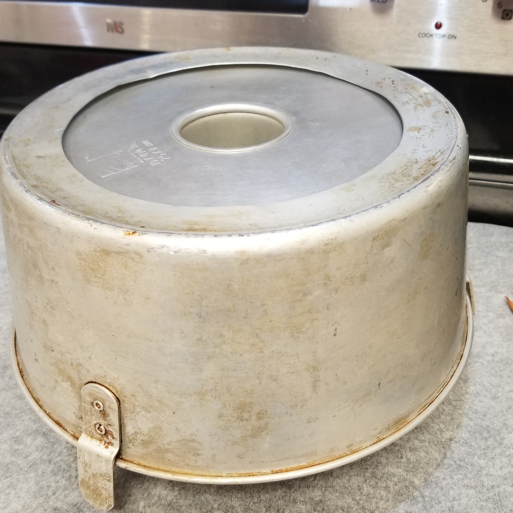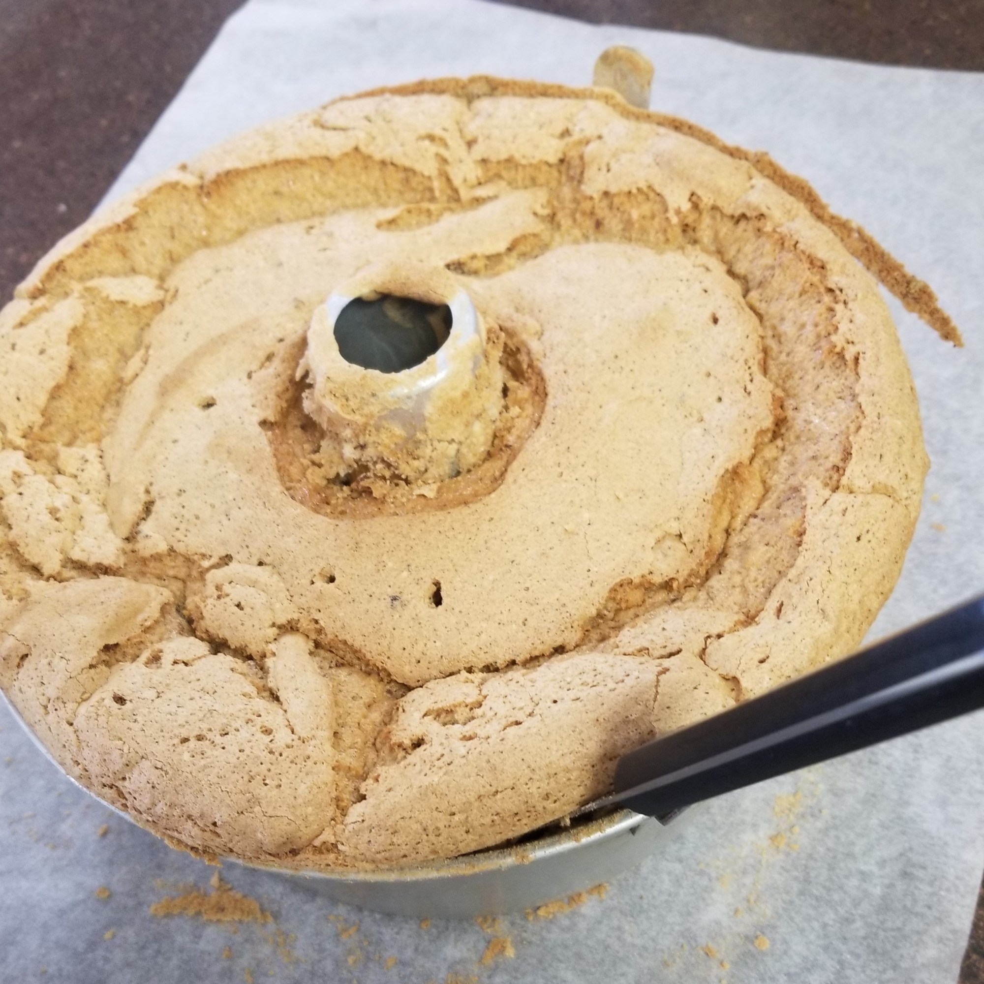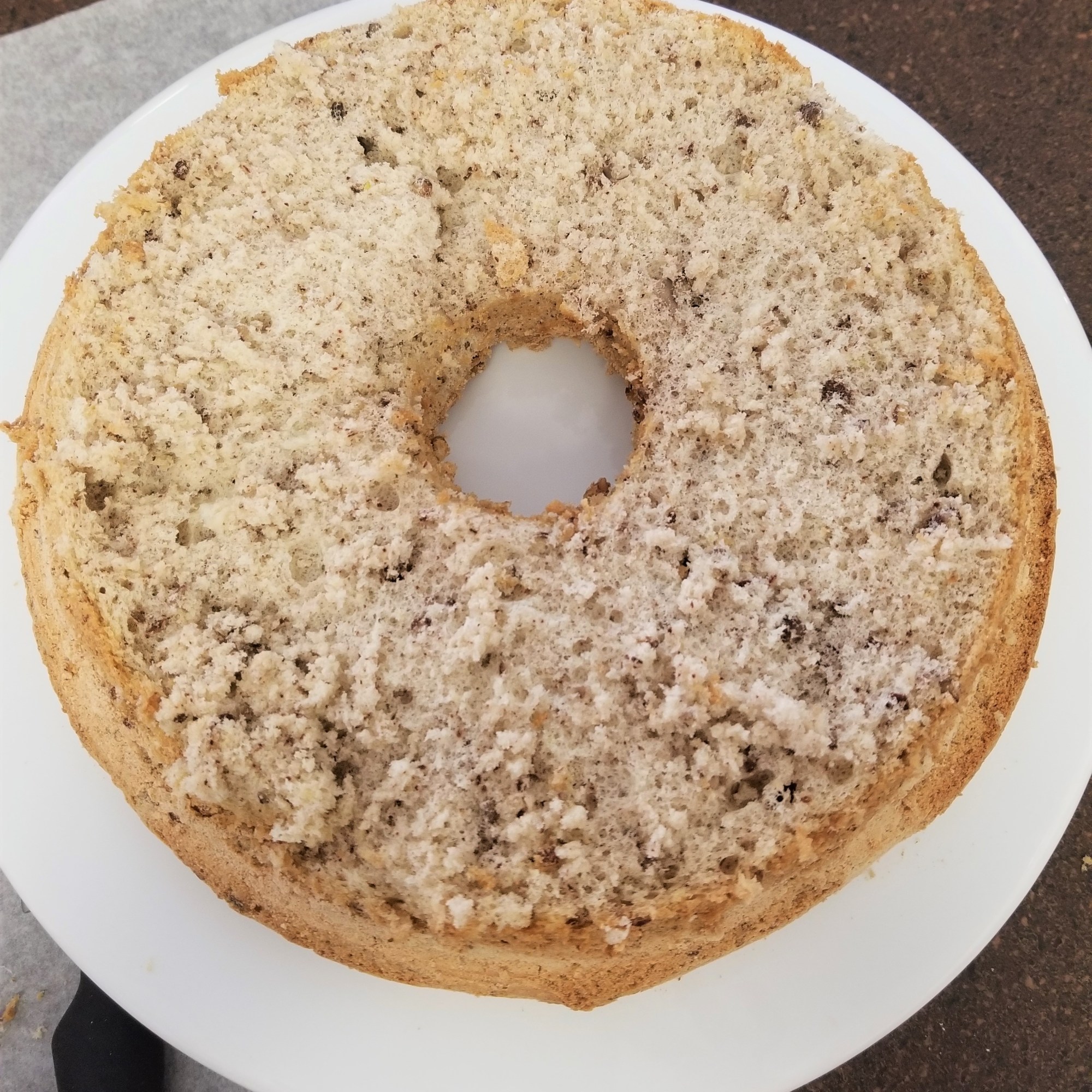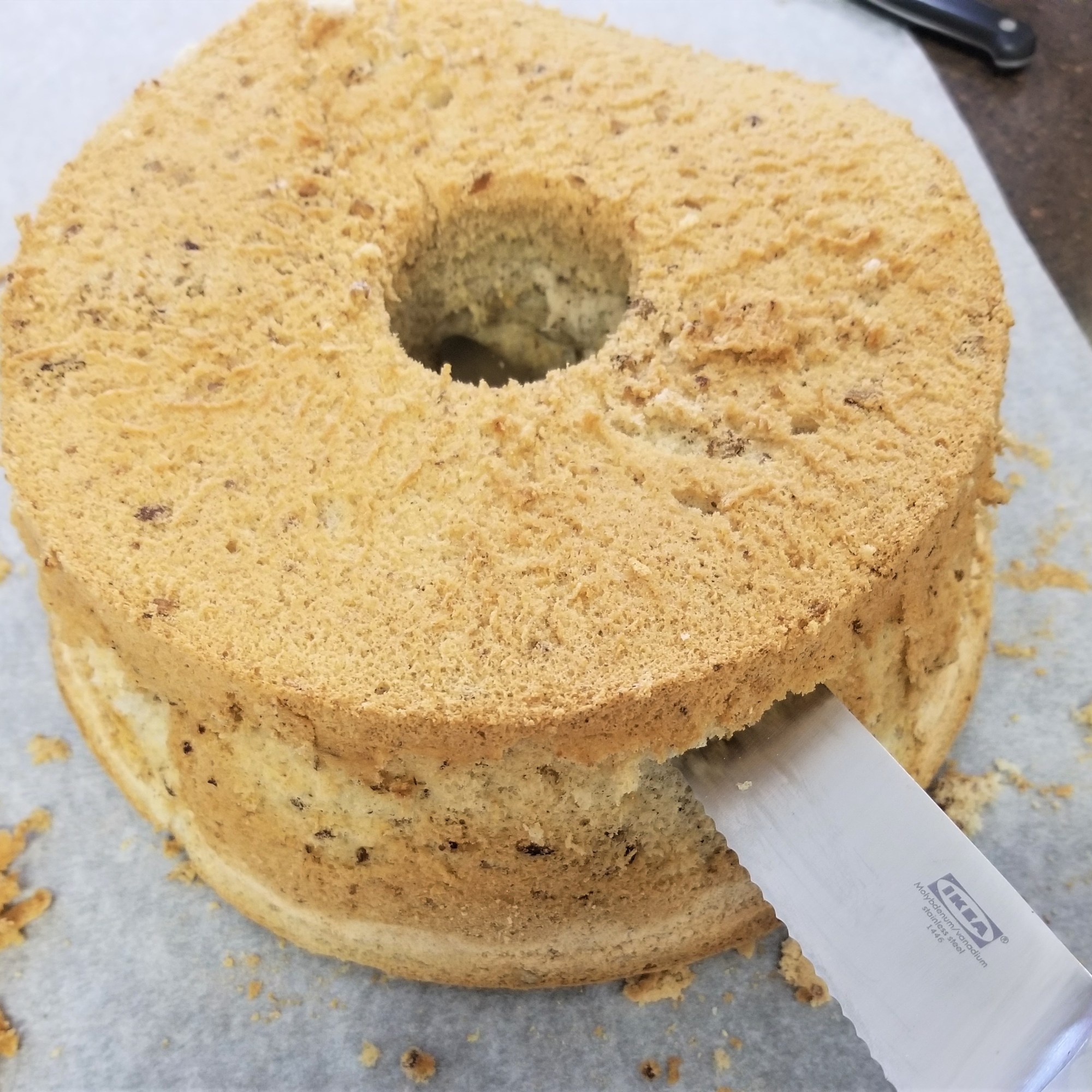 Pour the batter into a tube pan with a removable bottom and spread it out evenly. I like to gently tap the pan on the counter to eliminate any potential air pockets.