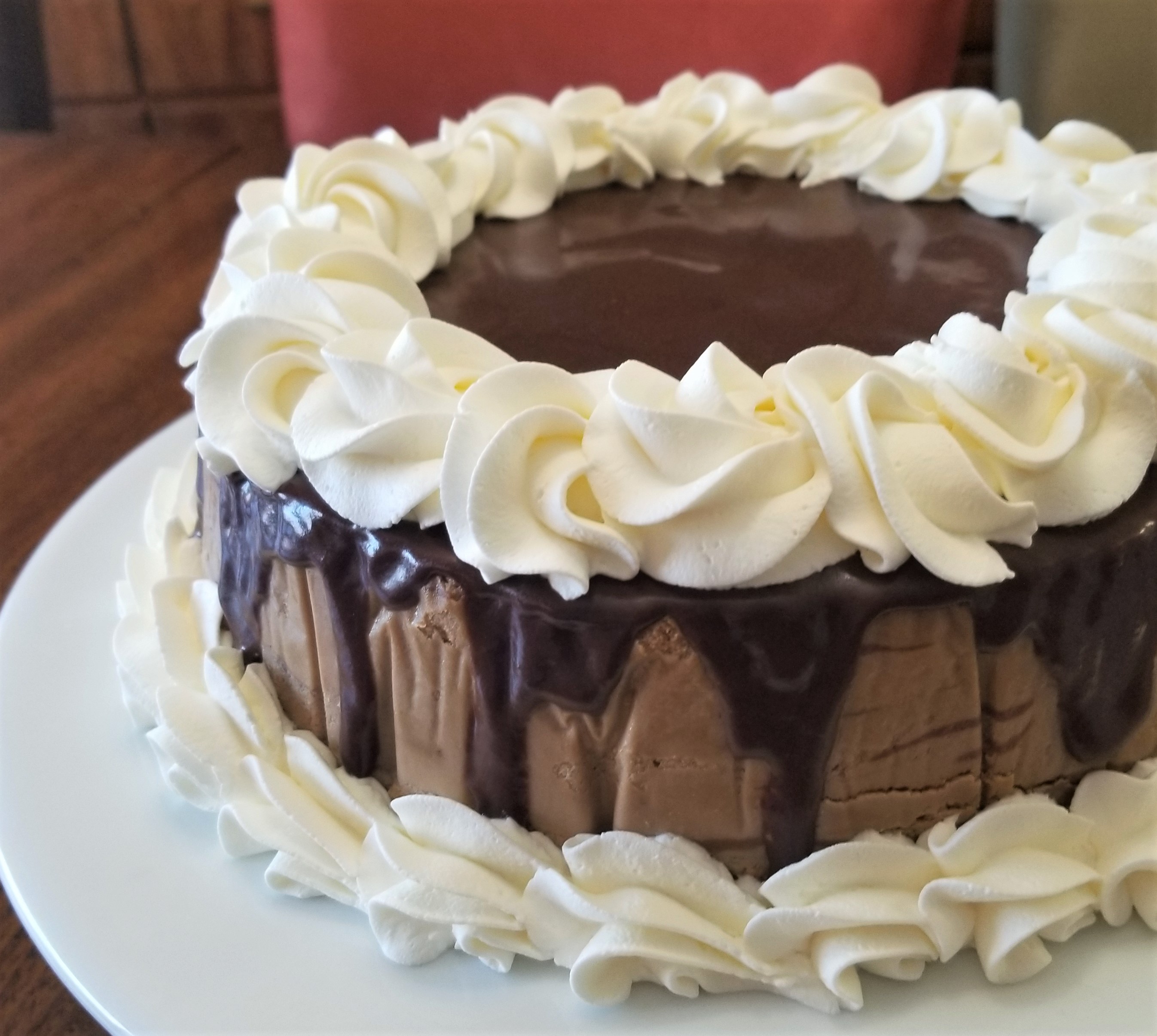 Once chilled, carefully release the spring on the pan. Remove the outer ring, then carefully remove the parchment paper from the outside and bottom of the cake. Place the cake on a serving plate.