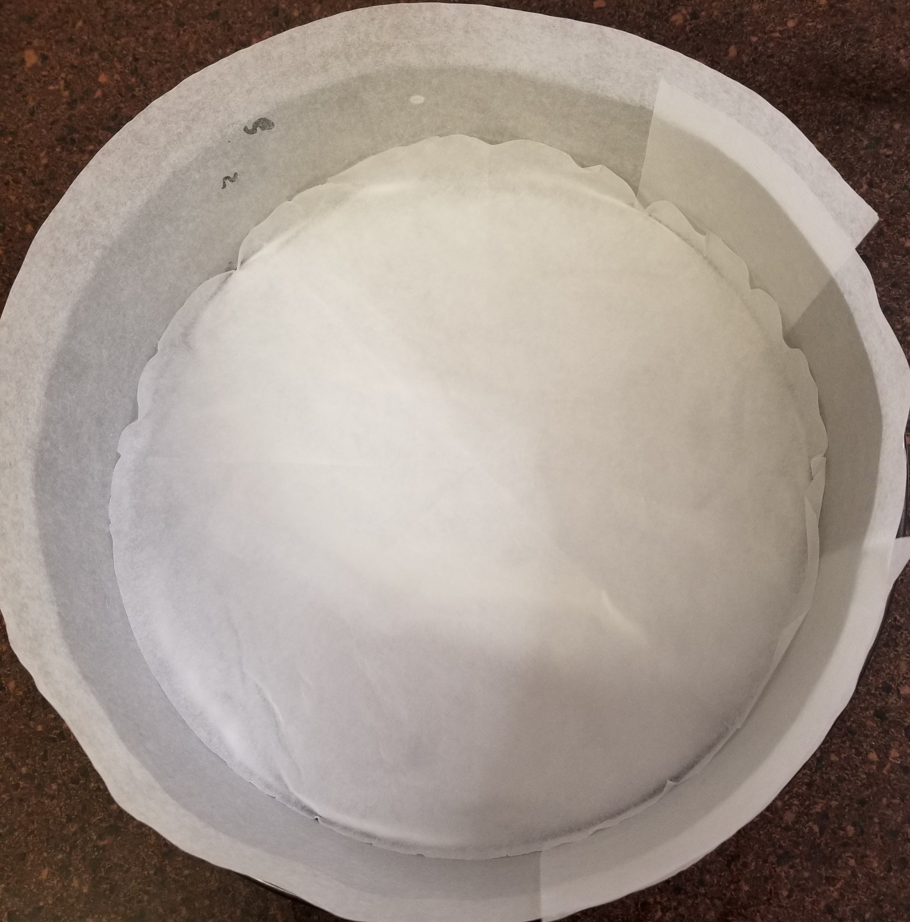 Preheat the oven to 350°F / 175°C. Prepare a 25-cm / 10″ springform pan by wrapping a piece of aluminum foil over the base before placing it in the pan and snapping it shut. Then place a parchment collar inside the pan and a parchment round in the bottom of the pan (see picture below).