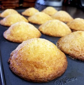 Spoon the batter evenly among the 12 wells and sprinkle a little sugar on top of each (I use about 1 Tbsp. of sugar divided over all of them). Place on the middle rack of your oven and bake for 15 minutes, turn the tray, and bake another 10 minutes or until lightly golden.