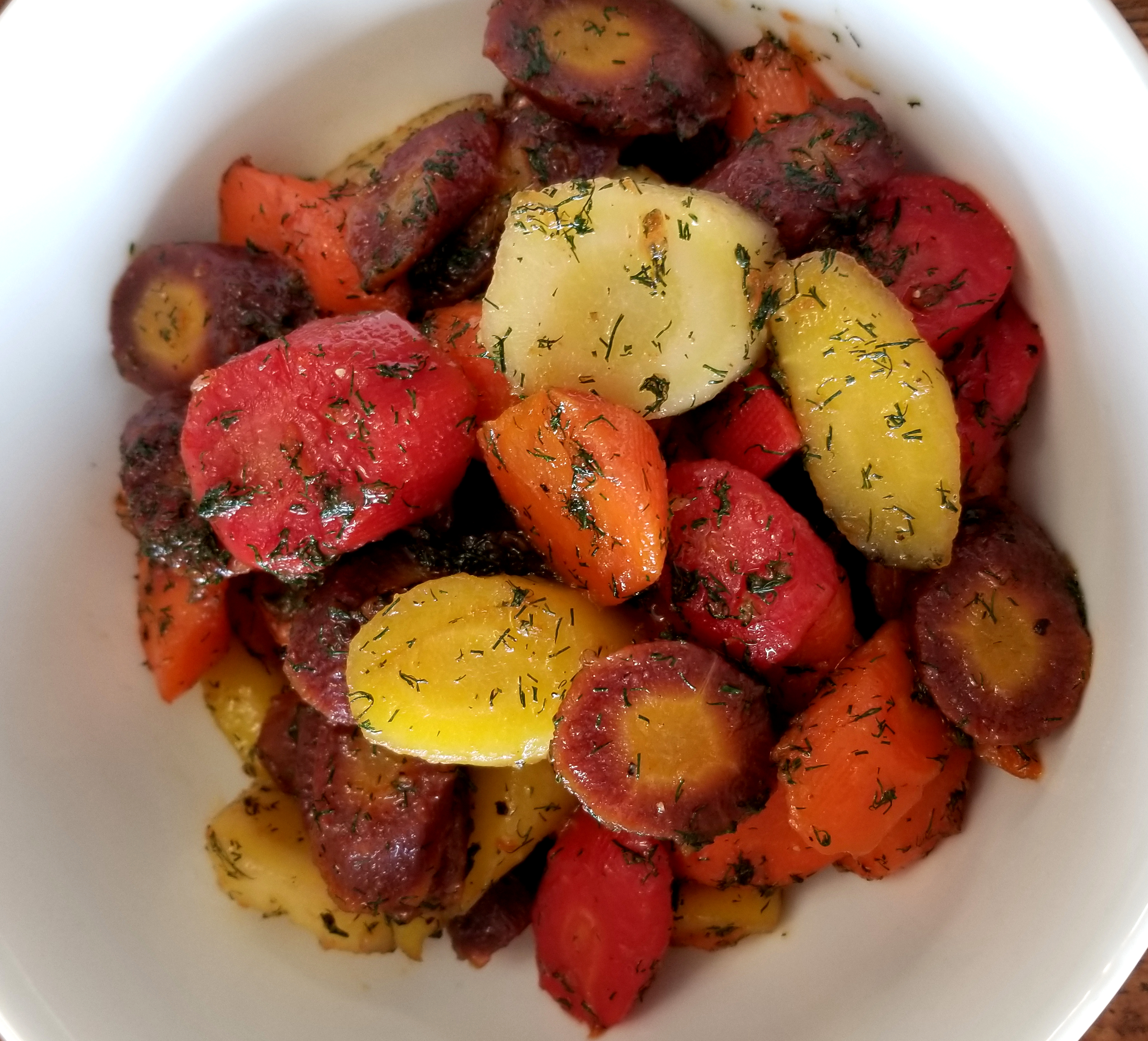 These organic rainbow carrots are available in many stores here but if you can’t find them, use all orange carrots, This is a simple, delicous vegetable dish.