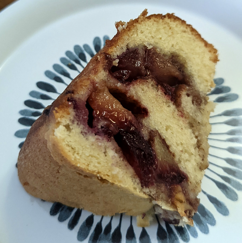 Finally, you can use any plums you like, as long as they’re ripe. The end result is a moist cake layered with cinnamon-laced juicy cubes of plum. Delicious!