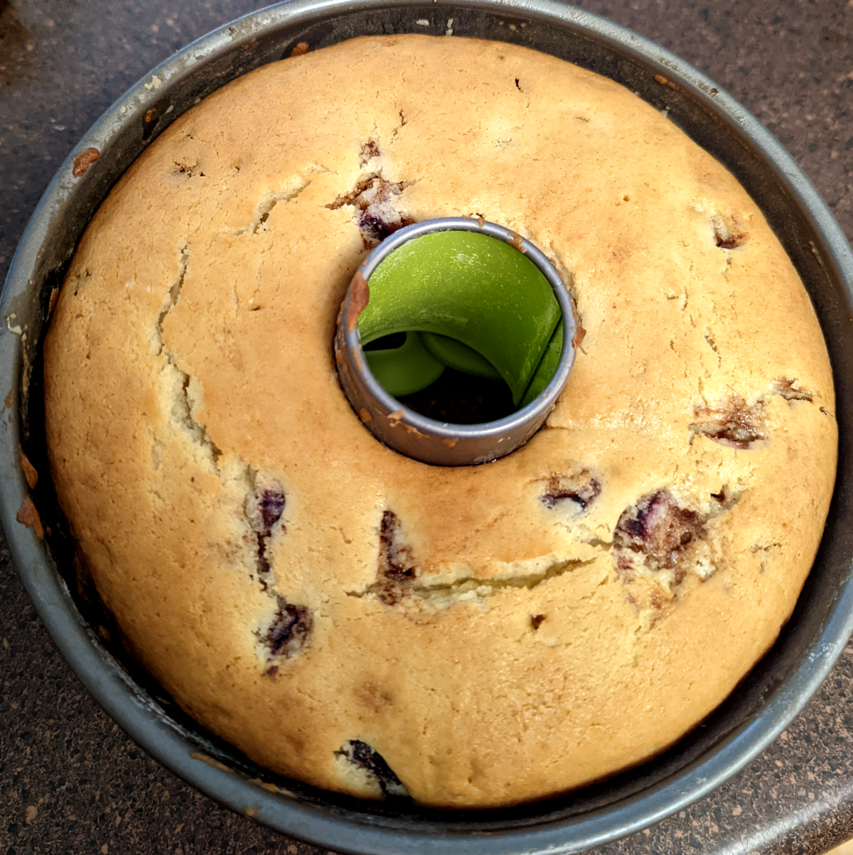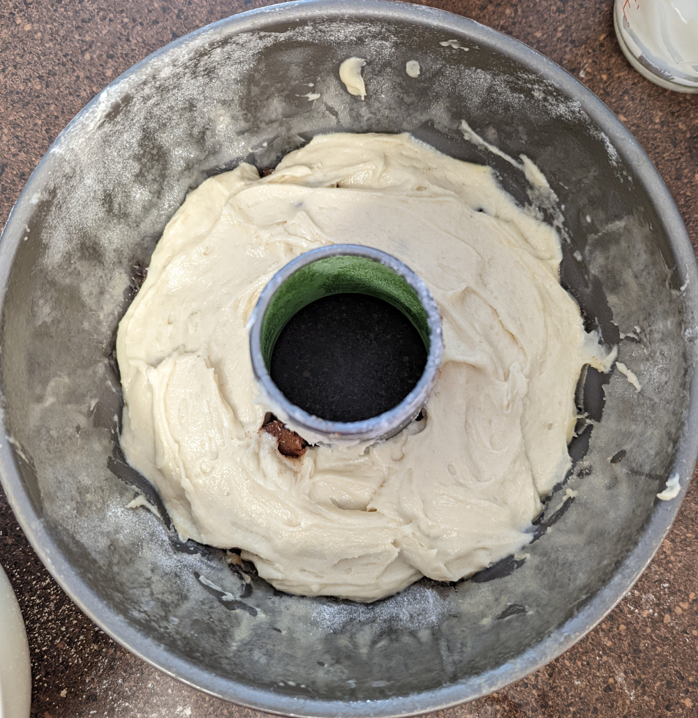 This cake batter is extremely easy to put together and when assembling it in the cake pan, very forgiving. I have a smaller, 8-cup bundt pan that I like to use but if you don’t have one, you can use a large loaf pan (9″x5″x3″) or a deep square pan (8″x8″x2″) instead.