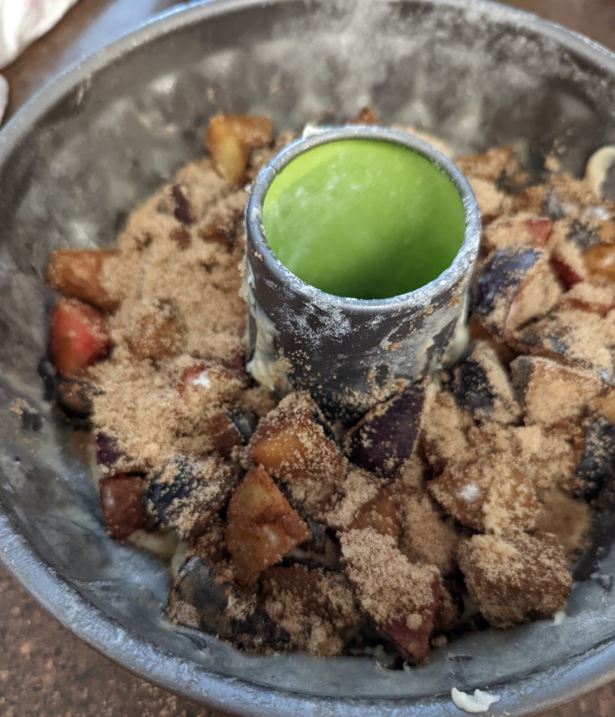 - In another bowl, combine the diced plums, cinnamon, flour and brown sugar. Stir well with a spoon.