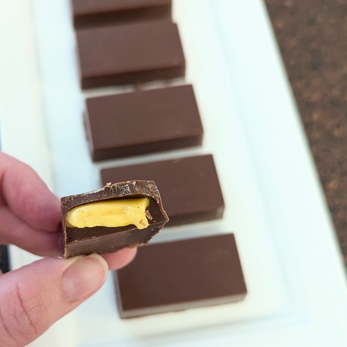 9. When the filling is chilled and the chocolate is set, it’s time to fill the chocolate.
