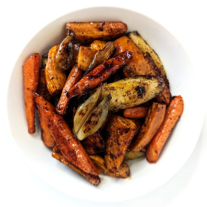 Carrots, sweet potatoes, parsnips and shallots roasted with honey and sumac.