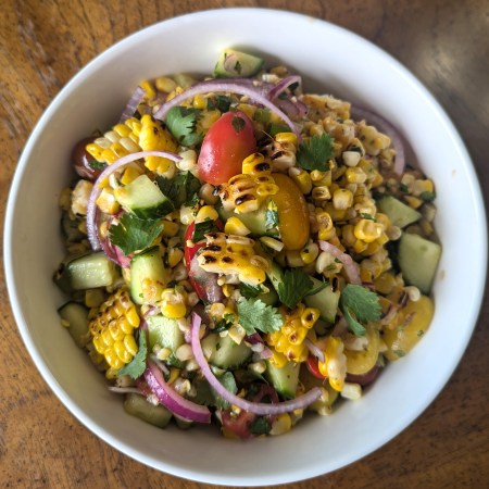 Fresh Summer Grilled Corn Salad with Cucumber and Tomato
